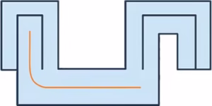 Nesse modelo, a entrada e a saída ficam no mesmo lado do armazém, formando um formato de “U” no fluxo de produtos.